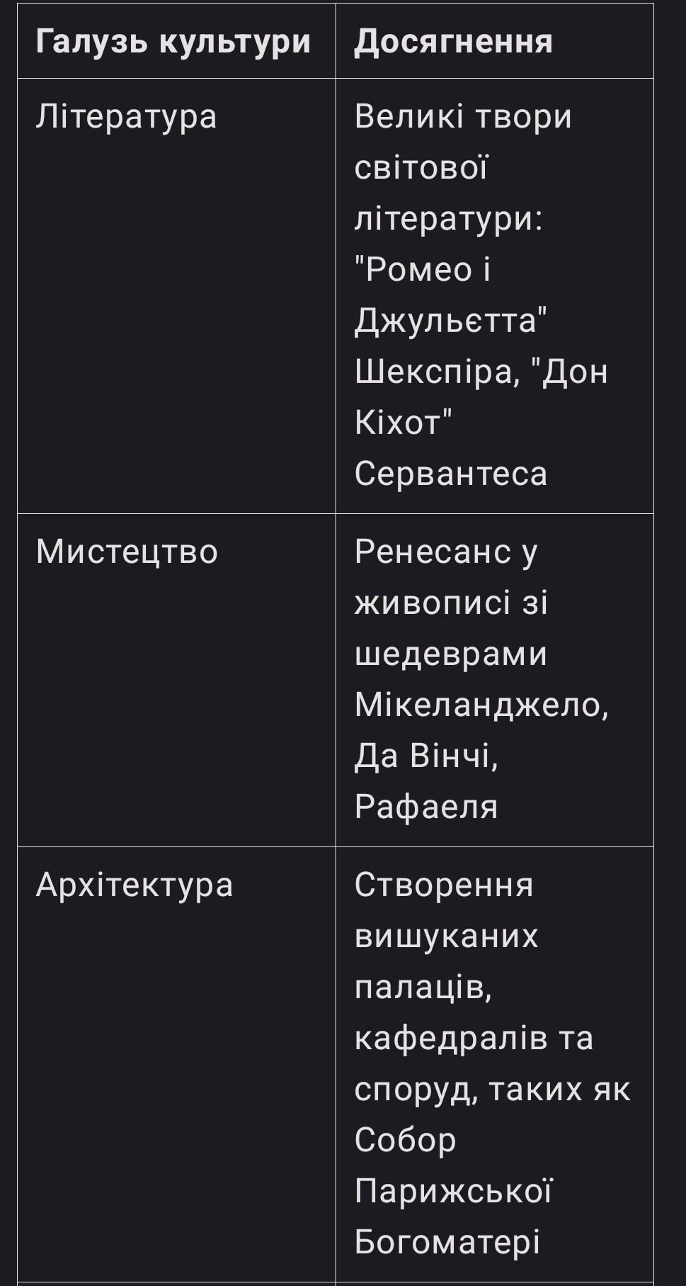 Створіть таблицю Розвиток культури доби розквіту За такими колонками:
