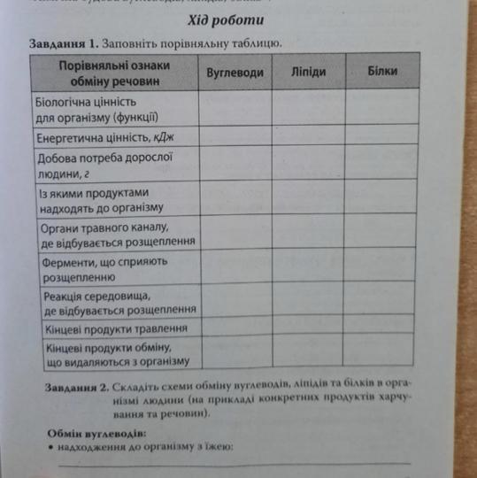 Завдання 2. Складіть схеми обміну вуглеводів, ліпідів та білків в орга-
