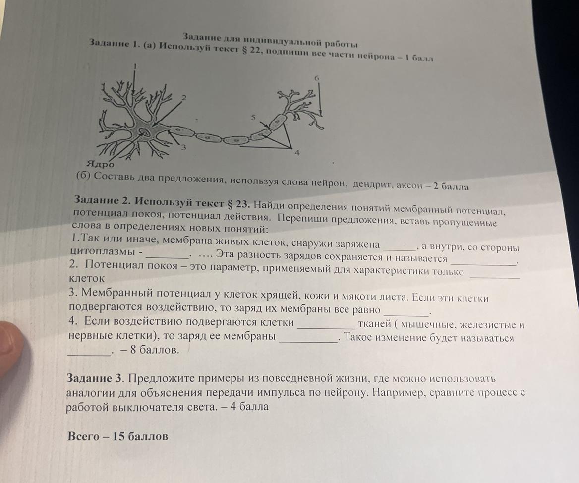 Задание 2. Используй текст § 23. Найди определения понятий мембранный потенциал,