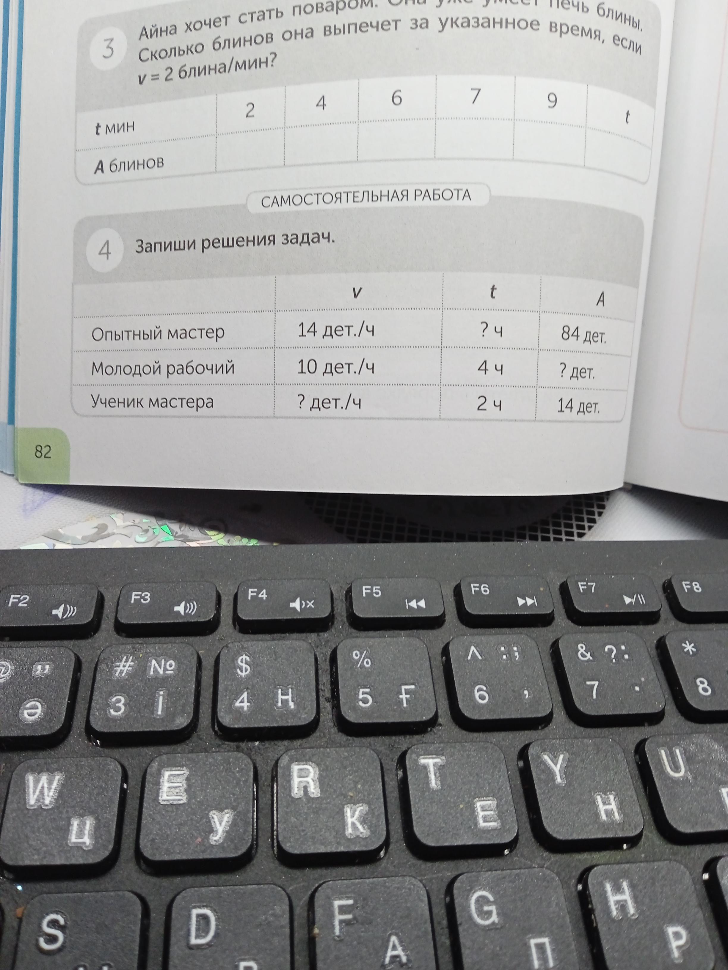 3) Р = А : t = 14 : 2 = 7 (дет./ч) - производительность ученика.
