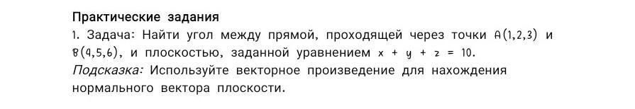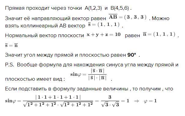 P.S. Вообще формула для нахождения синуса угла между прямой и плоскостью имеет вид : .