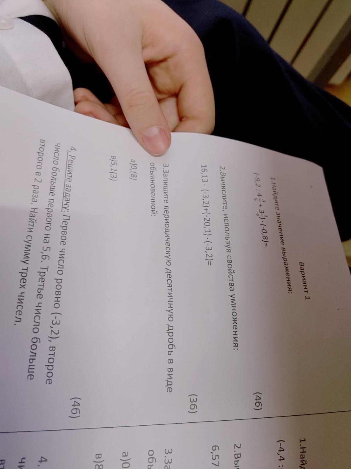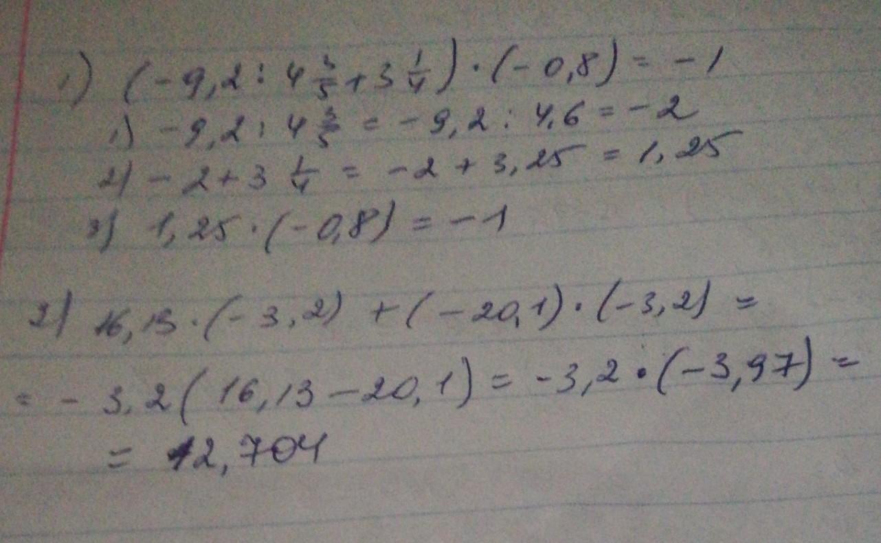 (-9,2:4⅗+3¼)*(-0,8)=3,08+4⅗=(3,08+4)+⅗=7,08⅗