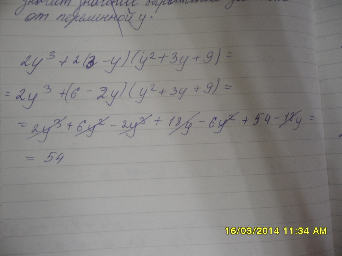 У меня далее получилось: = 2y^3+2*3^3-y^3=2y^3+54-y^3=2+54=56