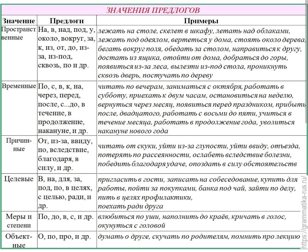 выписать только предлоги определить их значение, опираясь на таблицу. даю 100 баллов