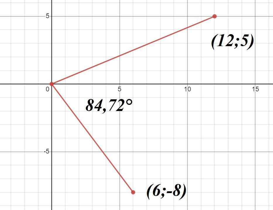 cosα = 12/(10*13) = 12/130 = 0,092.