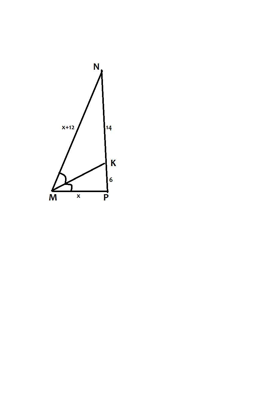 MN/NK = MP/KP; (х+12)/14 = х/6; 14х=6х+72; 8х=72; х=9