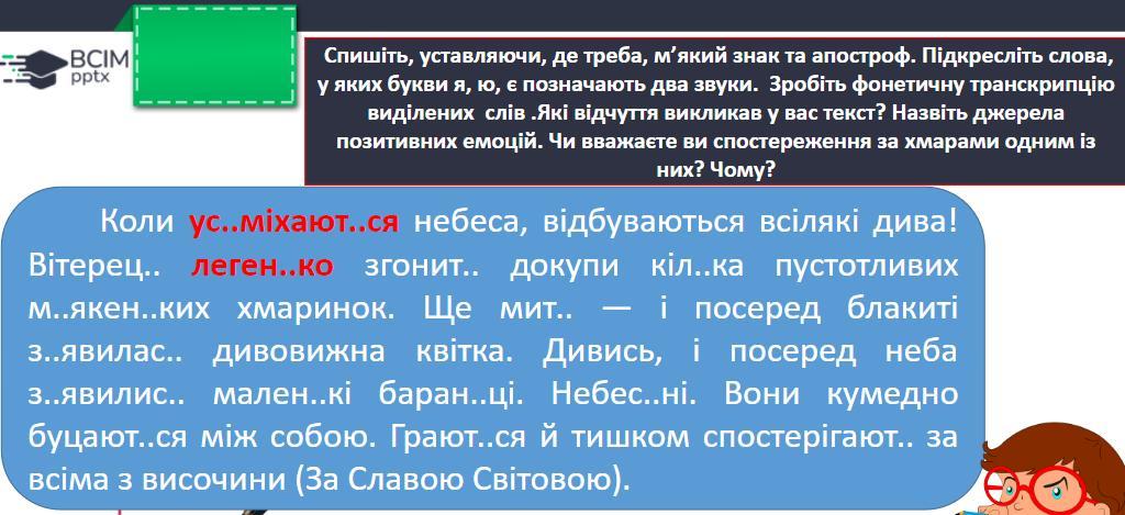 усміхаються - [у с м’ і х а́ й у ц`:а]
