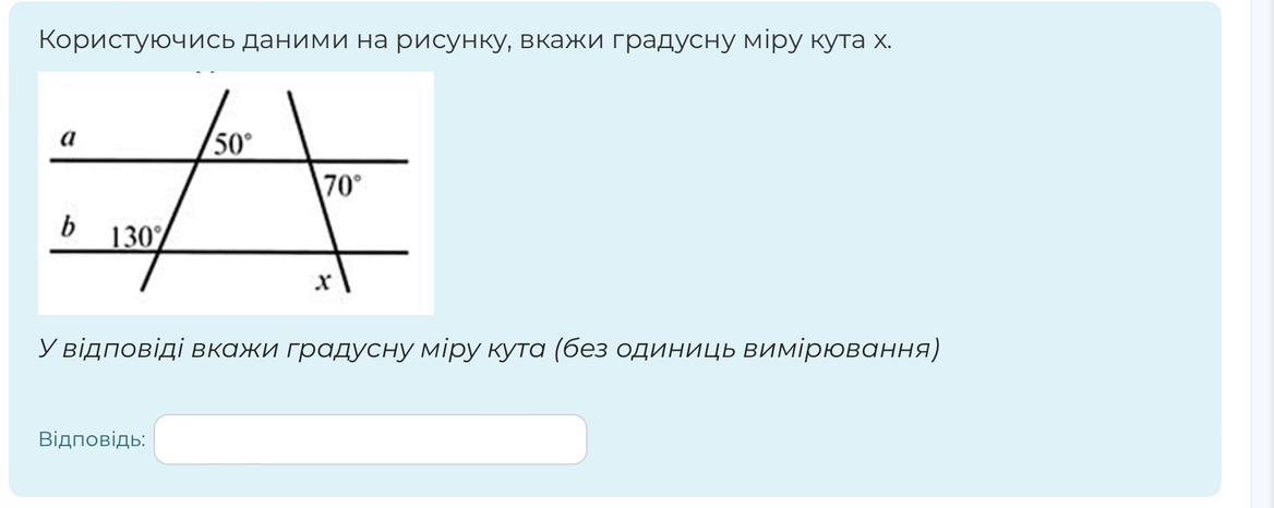Користуючись даними на рисунку, вкажи градусну міру кута х.
