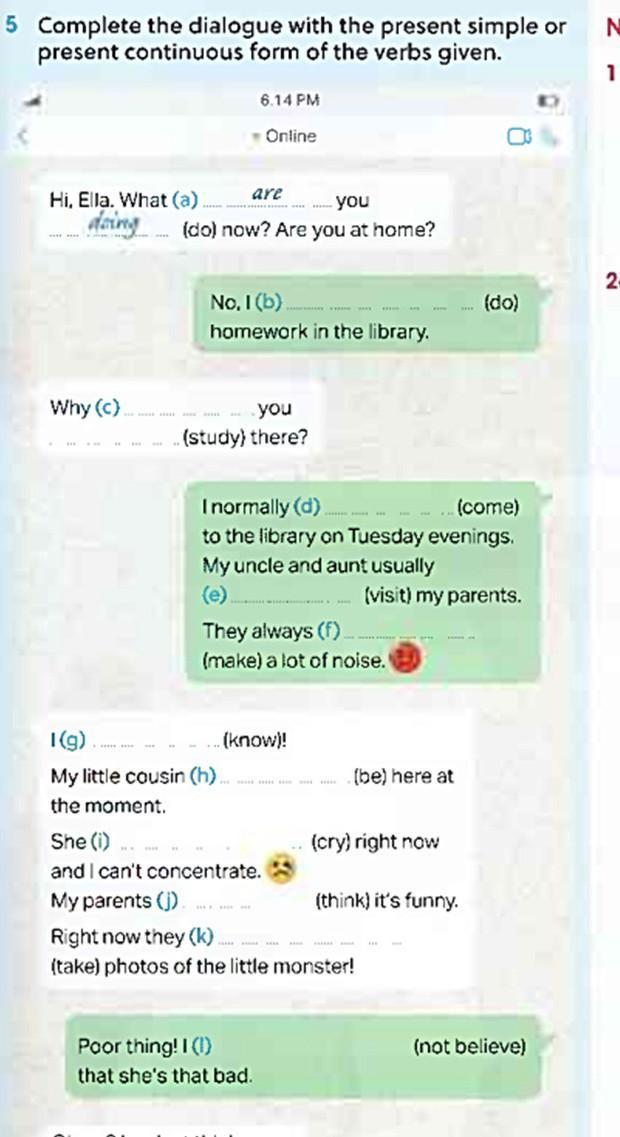 b) I’m doing c) Are you studying d)come e)visit f)make g) know h)is i)is crying j)think k) are taking l) I don’t believe
