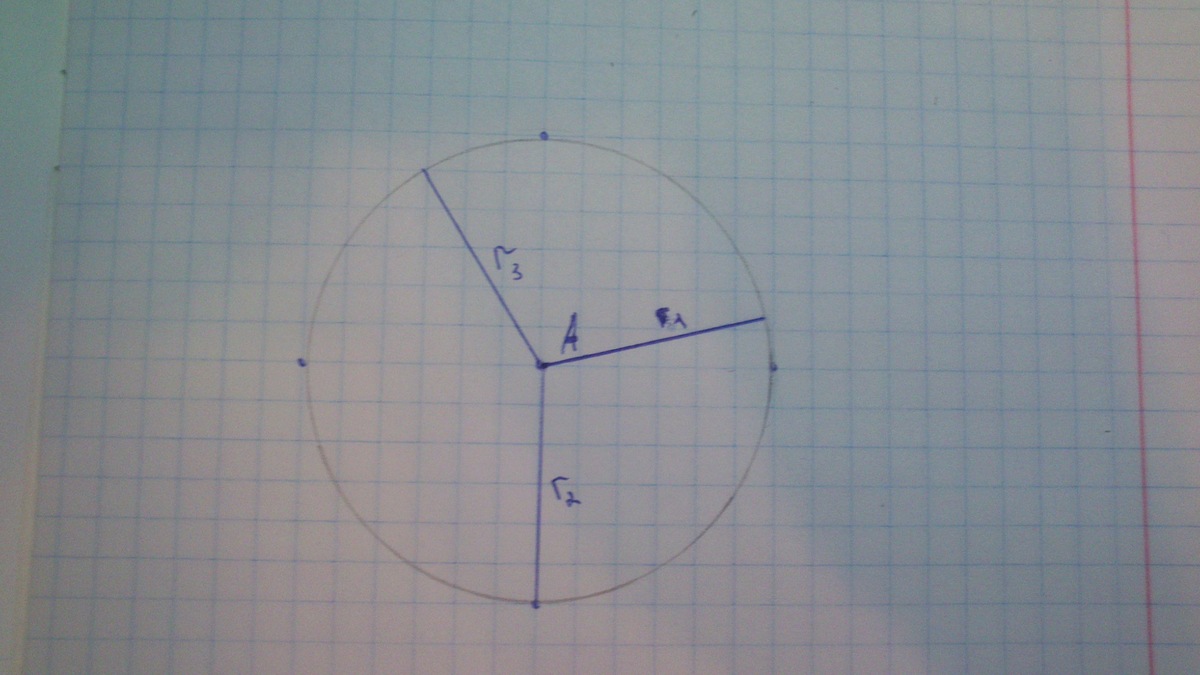 начертите окружность с центром в точке A радиусом 3 см.Проведите три отрезка,которые являются радиусами этой окружности.