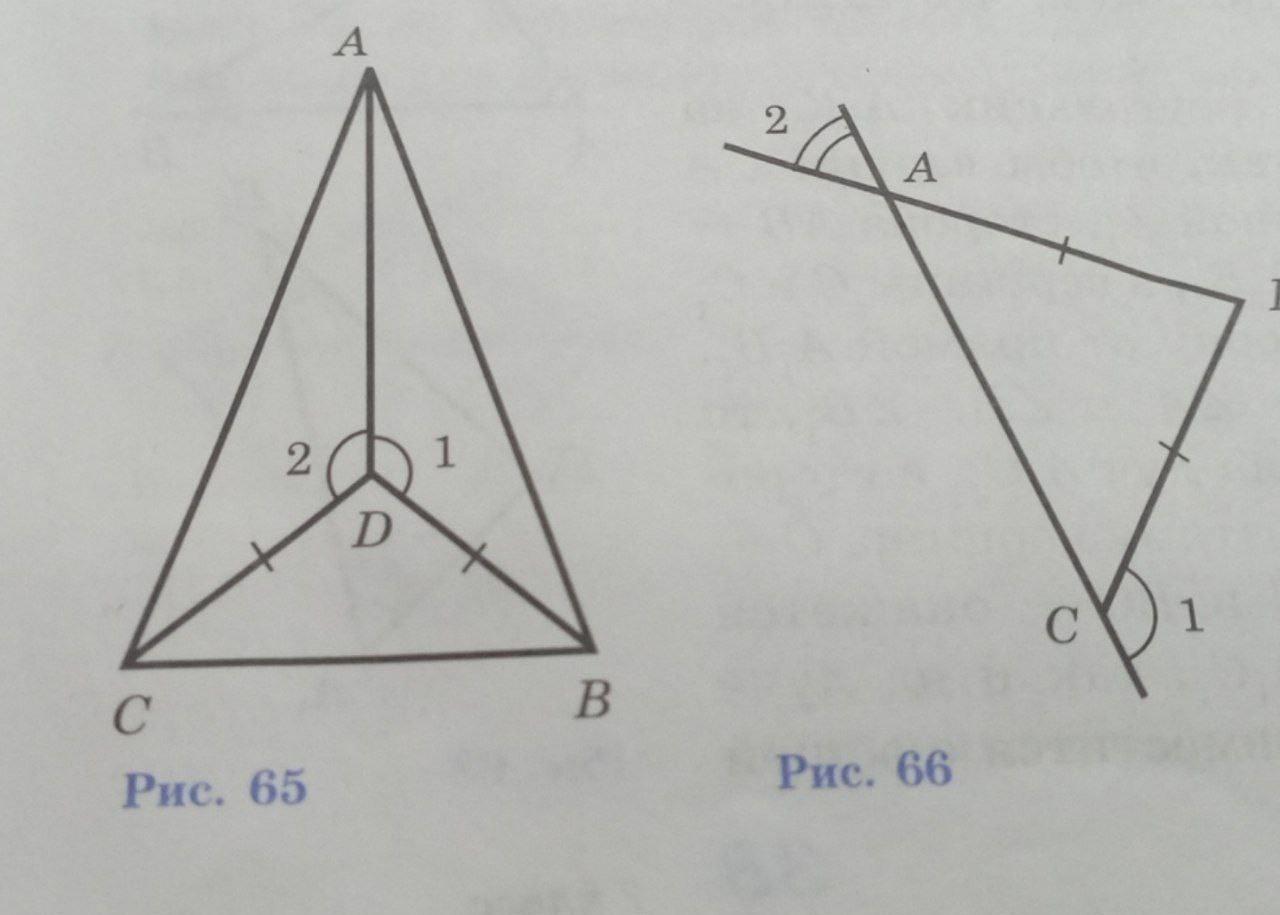 1.На рисунке 65 CD=BD, <1=<2. Докажите, что треугольник ABC равнобедренный