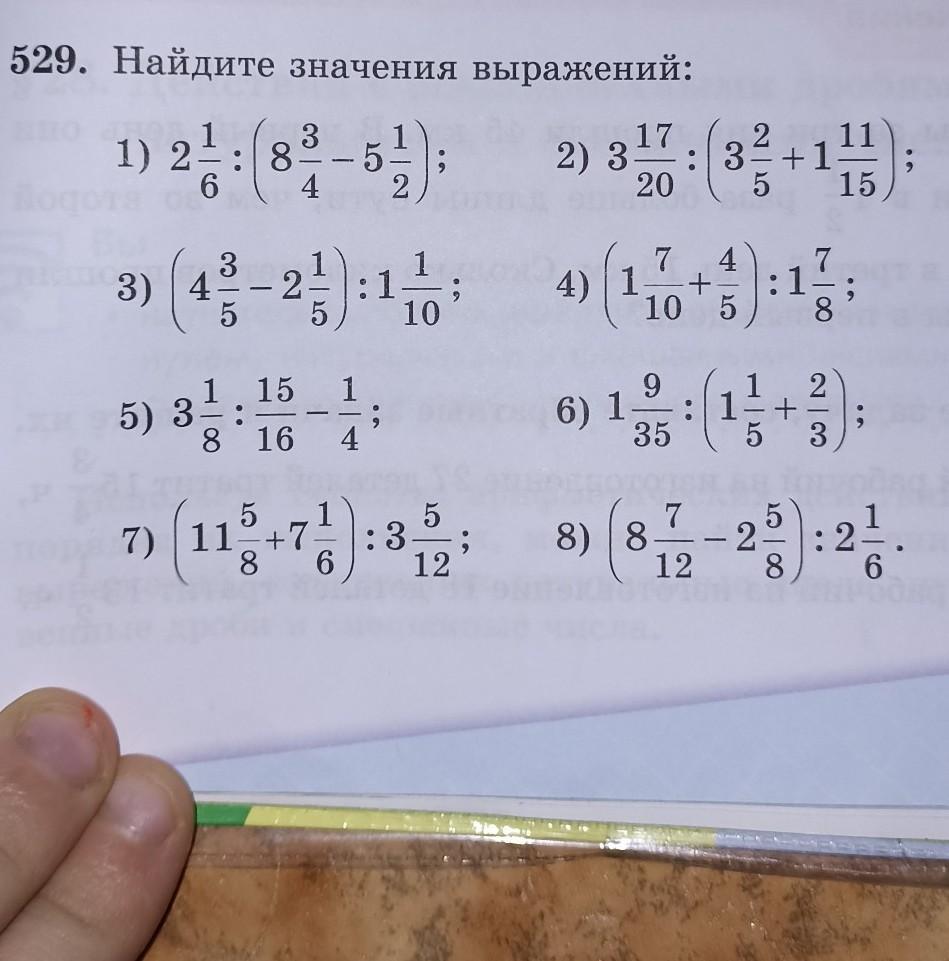 529. Найдите значения выражений: 1) 23:(83-51); 2) 3 3) 4 5) 3 = : 15 8 16 5 7) 11 +7 8 :1 1 4 10 :3- 12 17 20 3 3 +111); 15 7 4 4) 1 + :1- 10 5 9 2 6) 1 - /: (¹ + 3); 35 5 8) 8 -2- 12 171