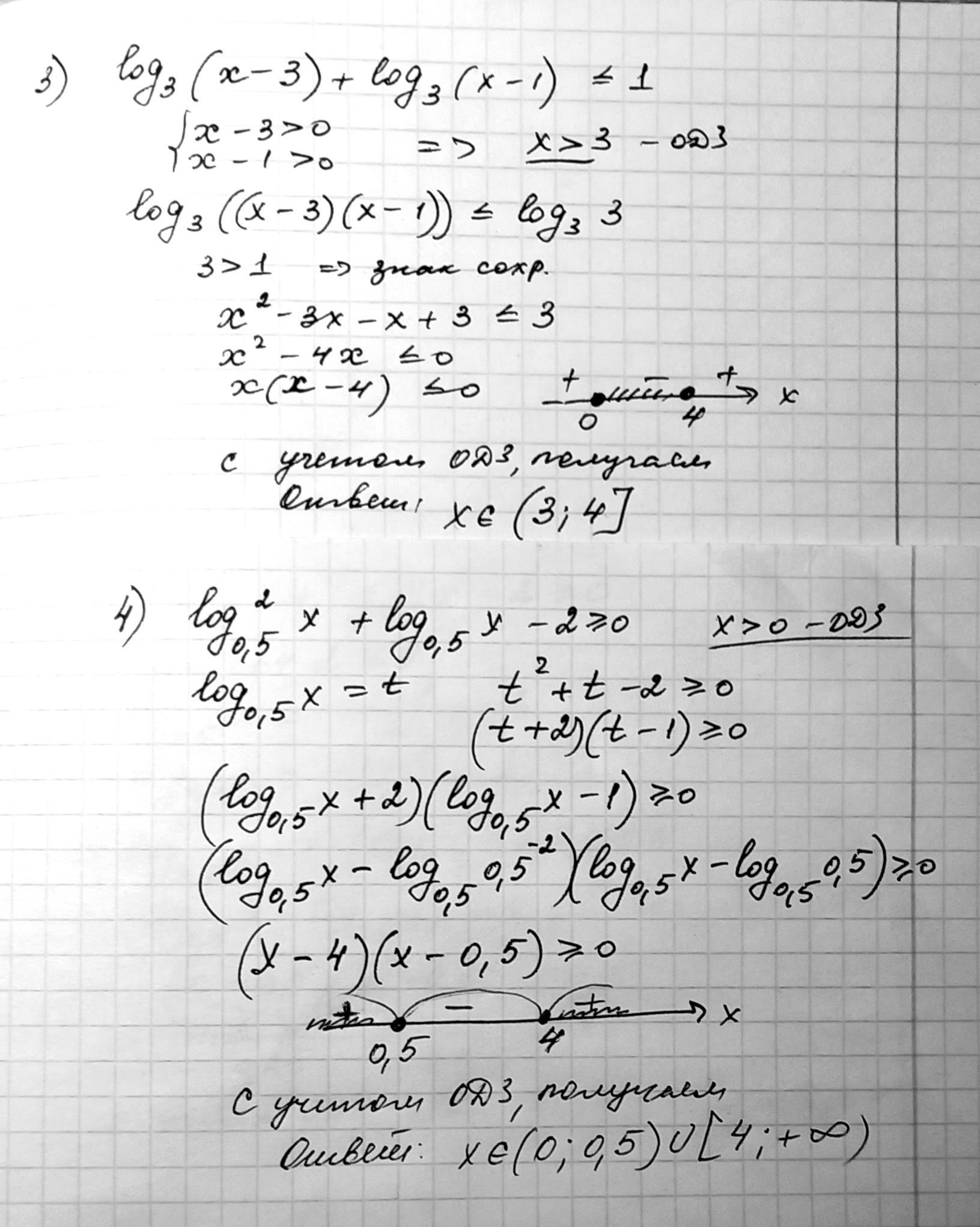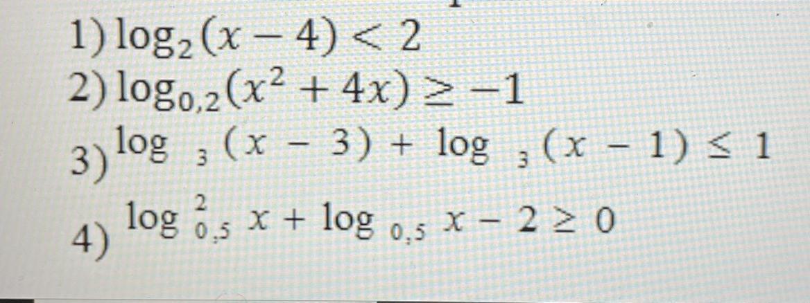 4)log 2 0,5 x + log 0,5 X-2 ≥ 0