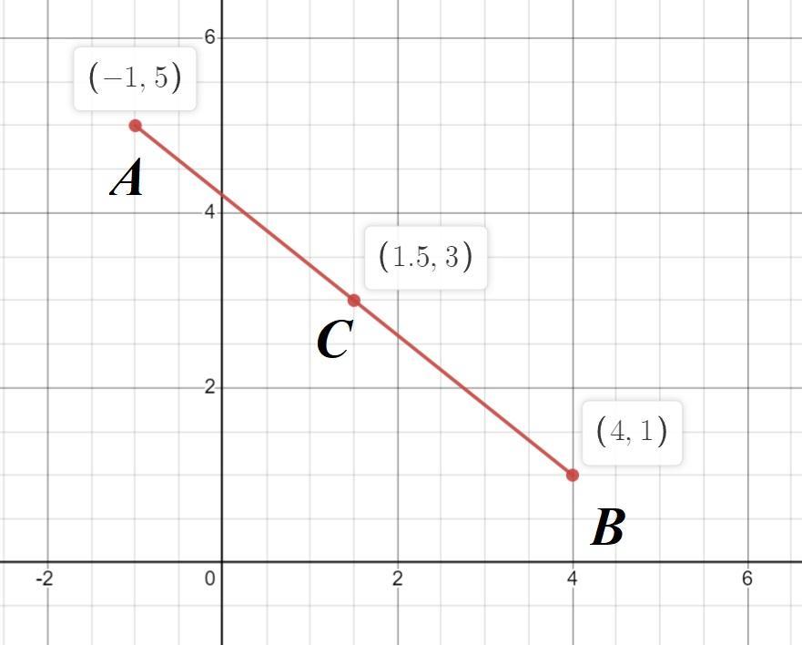 xC =(xA+xB)/2 = (-1+4)/2 = 3/2 = 1.5;