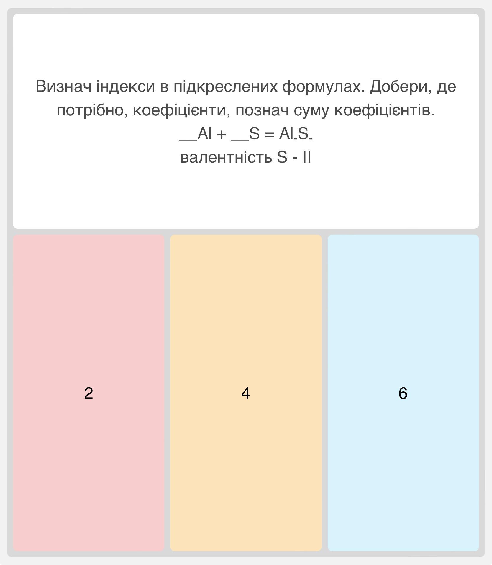 Правильний вибір для цього виразу - 4, оскільки вона відображає визначені індекси та забезпечує збалансовані валентності атомів у сполуці.