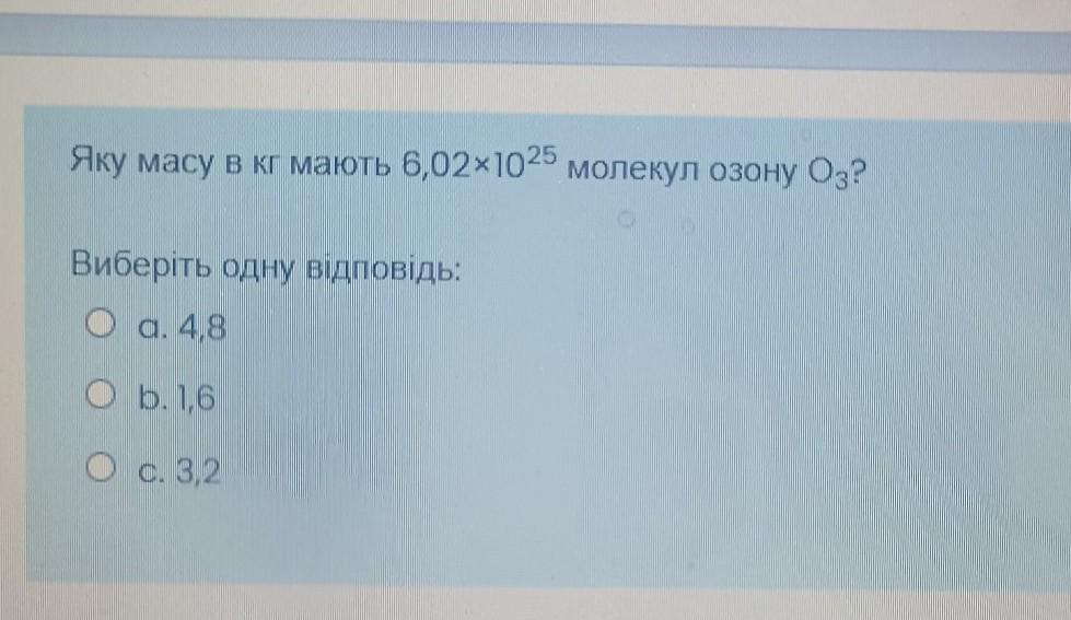 Відповідь: Маса O3 становить 4,8 кг (a).