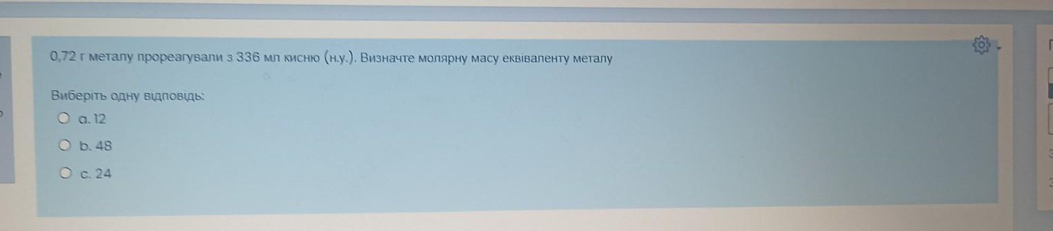 Відповідь b неправильна, оскільки 48 г - це подвійна молярна маса еквіваленту металу.