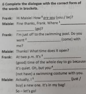 2 are you going, 3 to come ,4 the best, 5 don't have, 6 have just bought