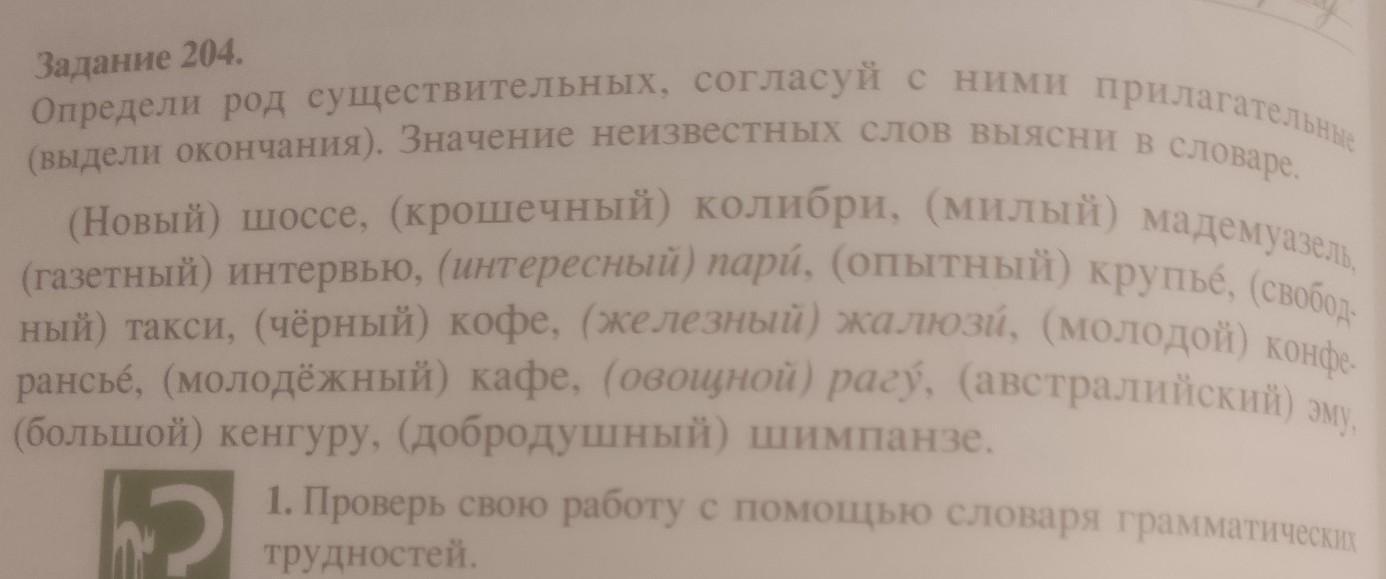 Определи род существительных, согласуй с ними прилагательные (выдели окончания). Значение неизвестных слов выясни в словаре.
