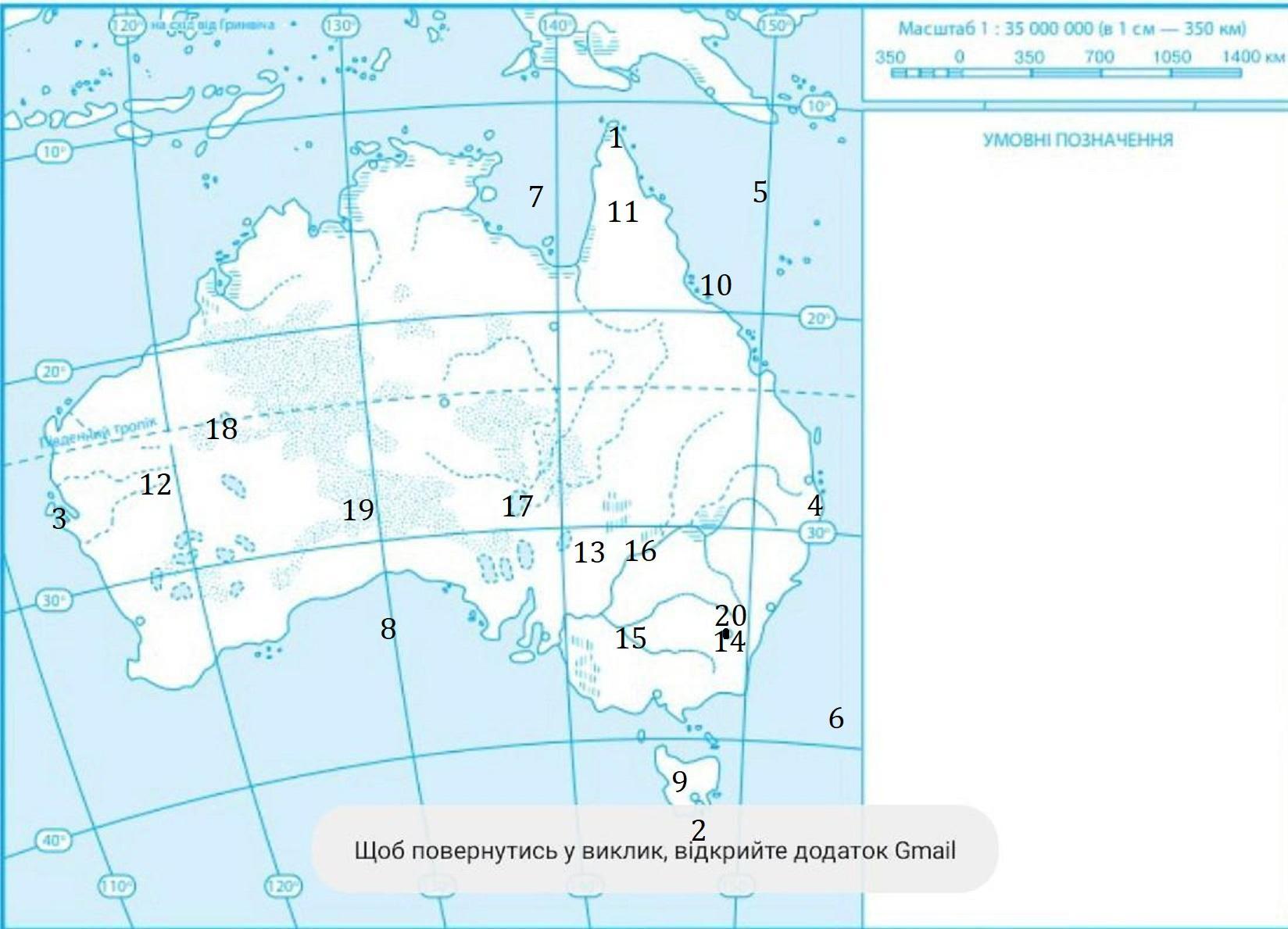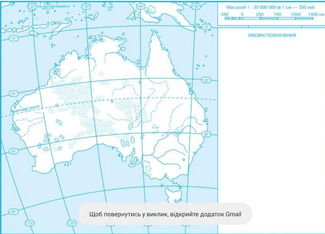 2. Позначте (за необхідності) і підпишіть на контурній карті «Австралія» географічні об'єкти Австралії.
