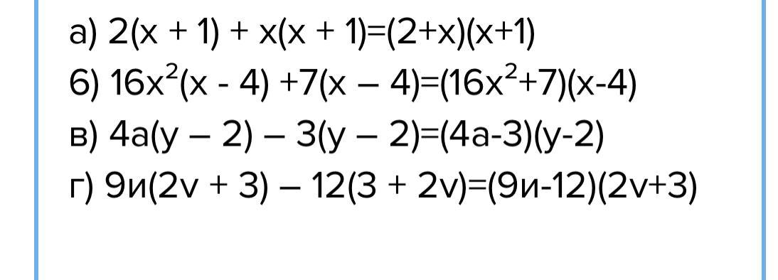 Ответ:1) 2(x+1)+x(x+1) =(x+1)*(2+x)
