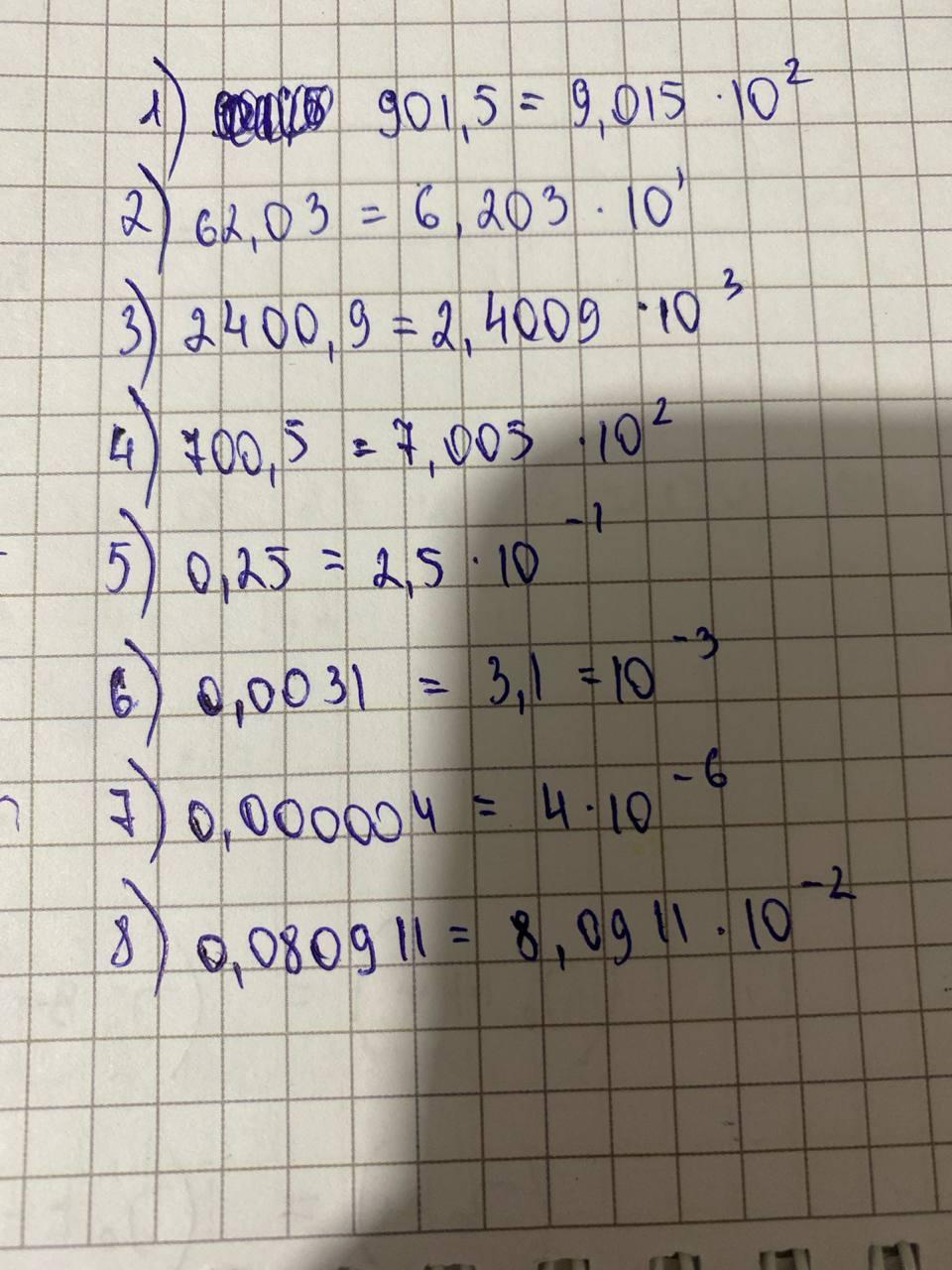 ,которое больше или равно 1 ,но меньше 10 , и степени числа 10 с целым показателем .