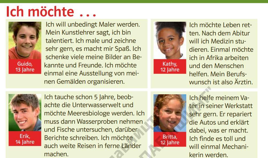 Ich mag einen Lehrer werden. Ich mache verschiedene Aufgaben gern. Einmal möchte ich in Austria mit Kindern fahren. Ich will unbedingt mit Kindern viel kommunizieren. Mein Traumberuf ist Lehrer.