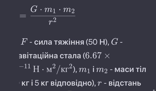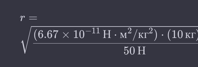 Яка відстань між двома тілами, якщо сила тяжіння між ними дорівнює 50 Н, а їхні маси - 10 кг і 5 кг?