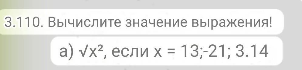\displaystyle\bf\\\sqrt{x^{2} } =|x|\\\\x=13\\\\|x|=|13|=13\\\\x=-21\\\\|x|=|-21|=21\\\\x=3,14\\\\|x|=|3,14|=3,14