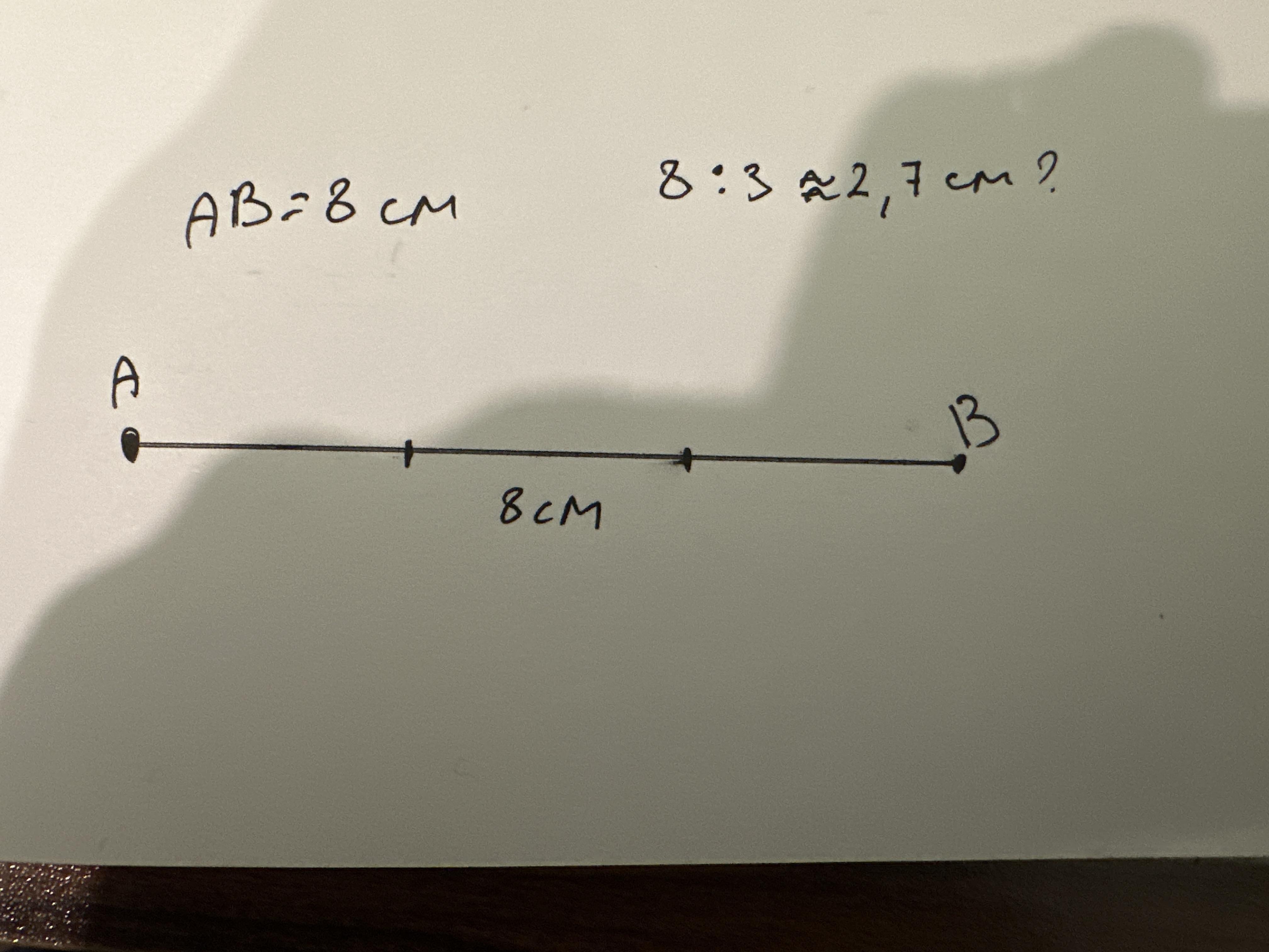 я думаю нужно начертить А, C, D, B. Так как разделено на 3 части. А ответ будет АВ=8см=АС=СD=DB=2,67