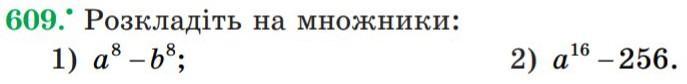Ответ: 1) a⁸ - b⁸ = (a - b)(a + b)(a² + b²)(a⁴ + b⁴);