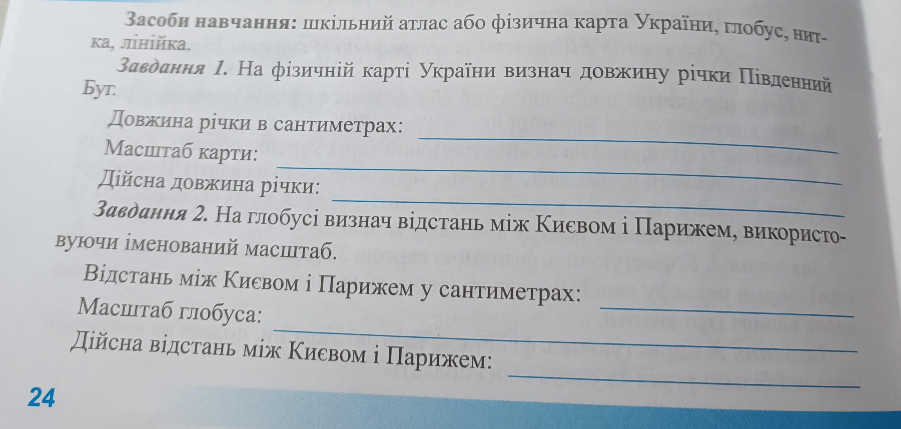 1. Відстань між Києвом і Парижем у см: 2,4 см