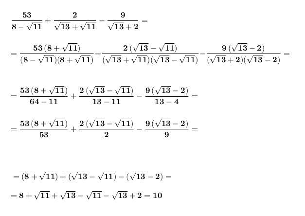 Вычислить значение выражения . Освобождаемся от иррациональности в знаменателе . Применяем формулу разности квадратов .