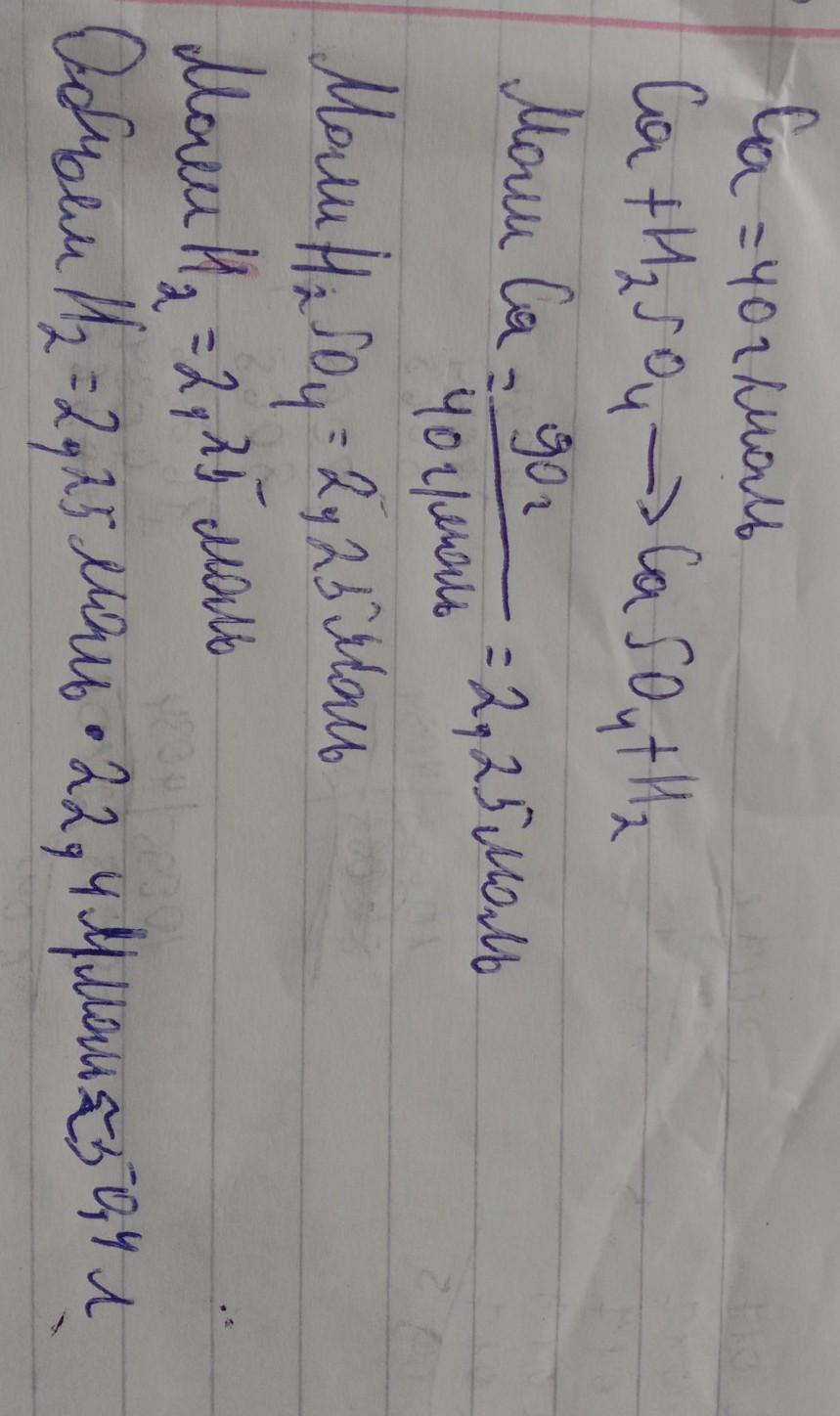 Какой объем и сколько молей водорода выделяется при реакции 90 г кальция с серной кислотой (кг)?