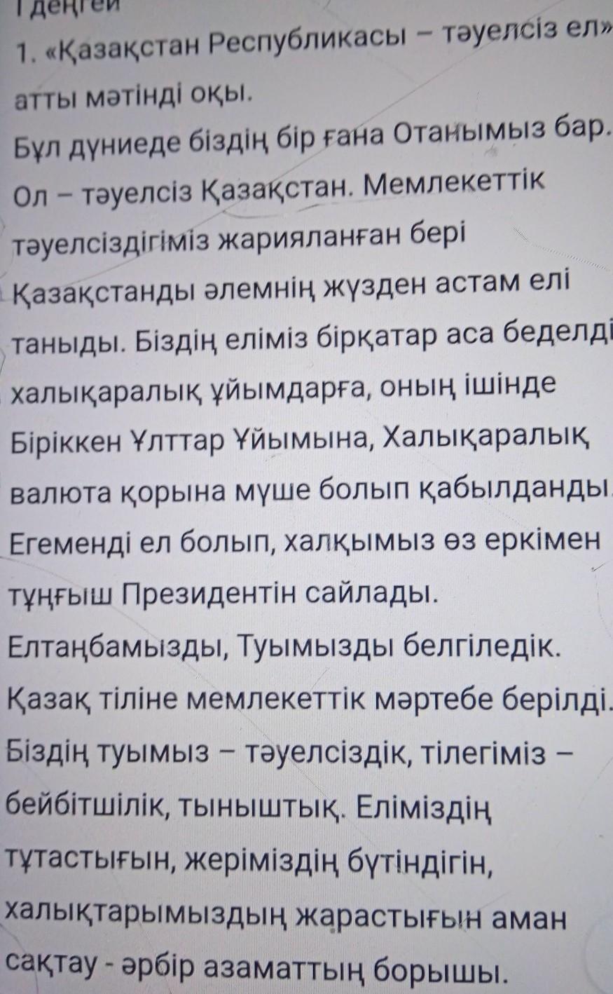 1)Қазақстанды əлемнің нешеден астам елі таныды?