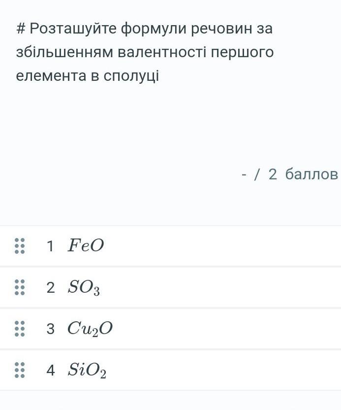 розташуйте формули речовин за збільшенням валентності першого елемента в сполуці