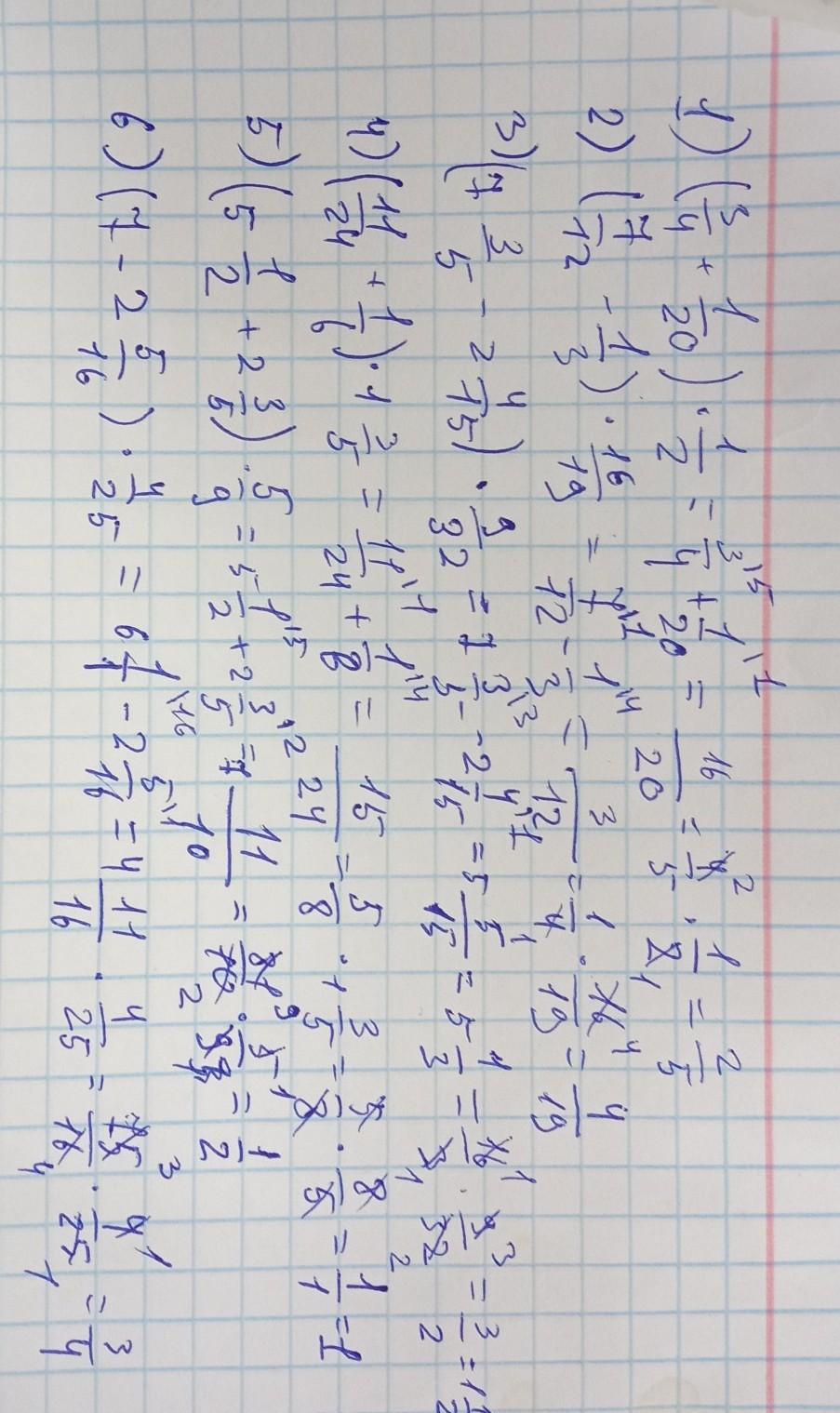 6) (7 - 2 5/16) × 4/25=?