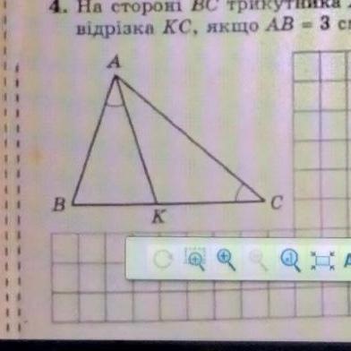 4. На стороні ВС трикутника АВС вибрано точку К так, що ВАК = С. Знайдіть довжину