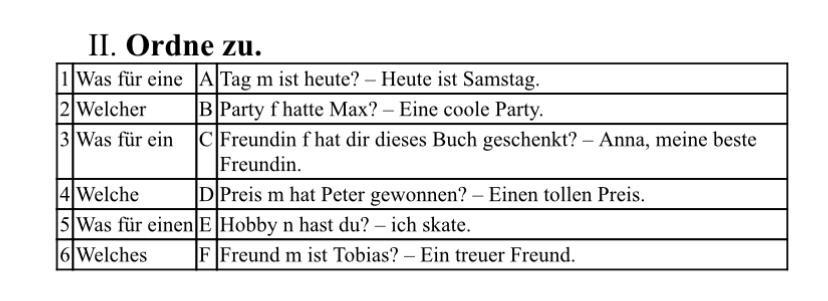 ПОМОГИТЕ ПОЖАЛУЙСТА, СРОЧНО И ОБЪЯСНИТЕ КОГДА ИСПОЛЬЗУЕТСЯ Welche а когда was für eine