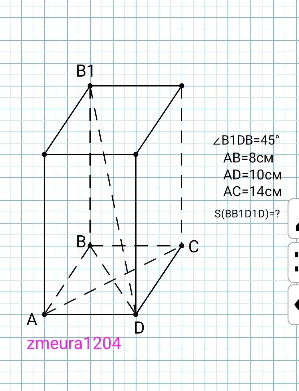 S(BB1D1D)=BD²=132 см²