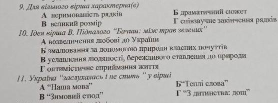 9)А (Вільний вірш — це вірш, в якому зберігається віршований ритм, але рядки можуть мати різну довжину, а рими і поділ на строфи не є обов'язковим)