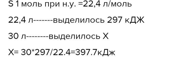 1. Сколько тепла выделится при образовании 30 л (н.у.) сернистого газа?