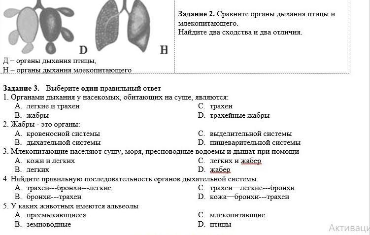 У птиц есть воздушные мешки. У млекопитающих есть альвеолы, а у птиц - нет