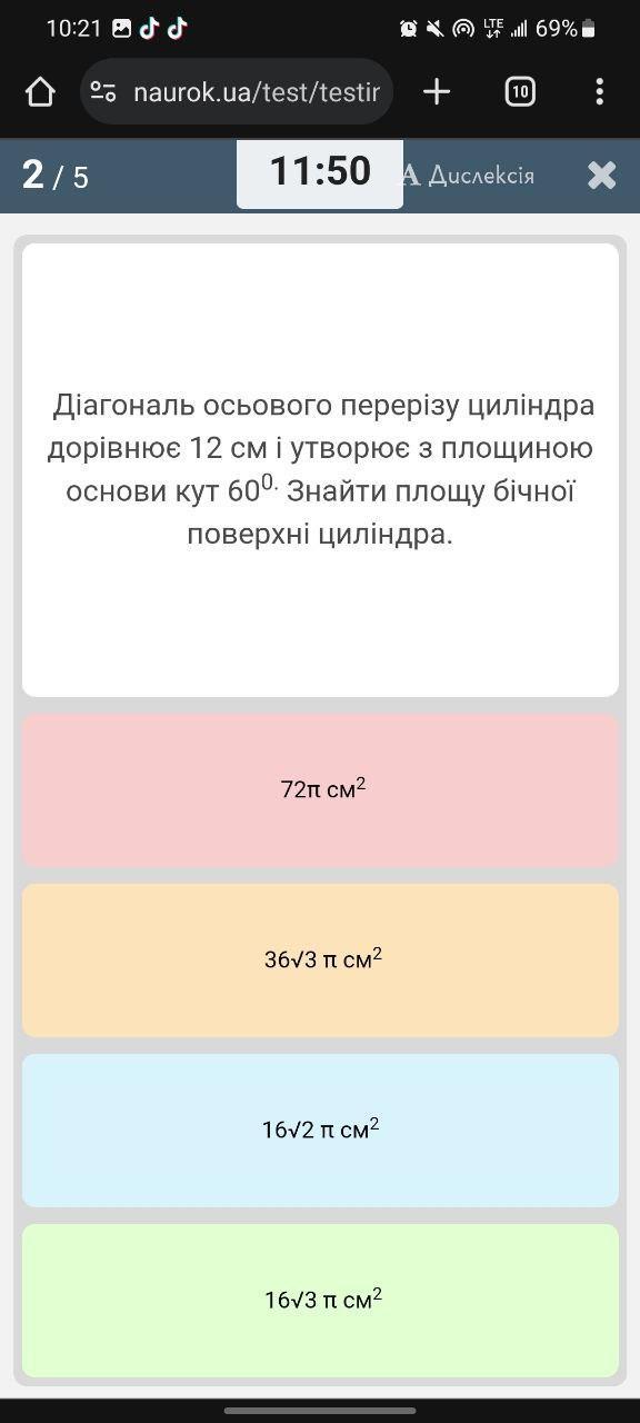Ответ НА ЗАДАНИЕ ПОД НОМЕРОМ 2/5 - 36√3 π см²