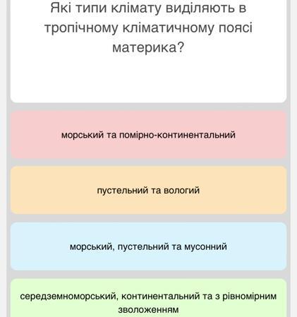 морський, пустельний та мусонний