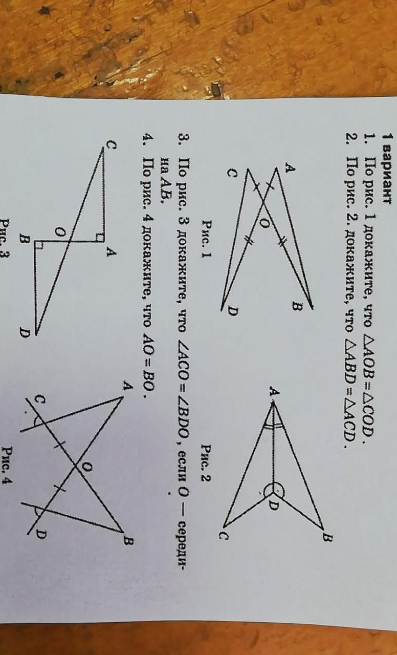 ПОМОГИТЕ ПОЖАЛУЙСТА !!!!!!1. По рис. 1 докажите, что ДАОВ-ДCOD. 2. По рис. 2. докажите, что ДАВD=ДACD. A C 0 Рис. 1 B D A P