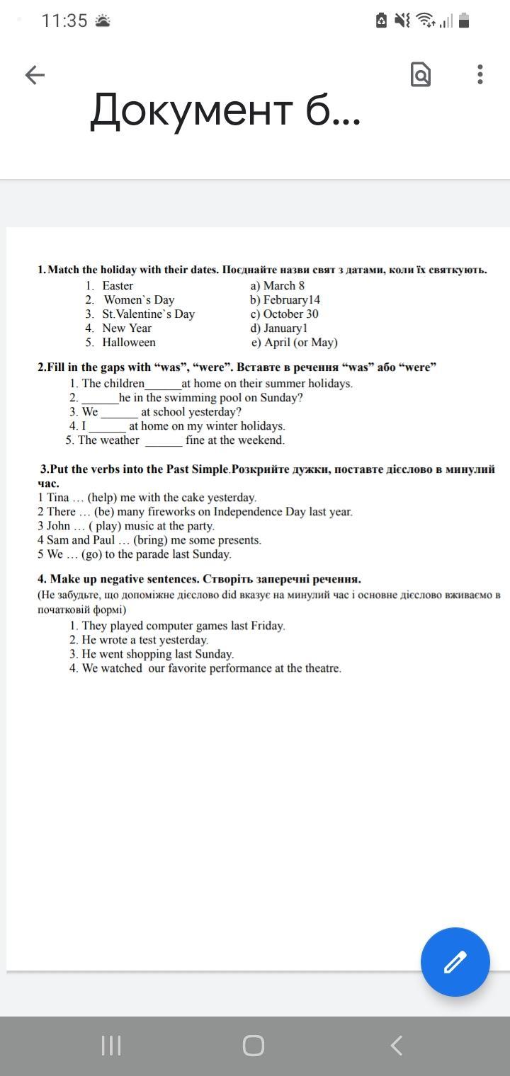 1 they didn't play...., 2 he didn't write a test..., 3 he didn't go shopping..., 4 we didn't watch our.....