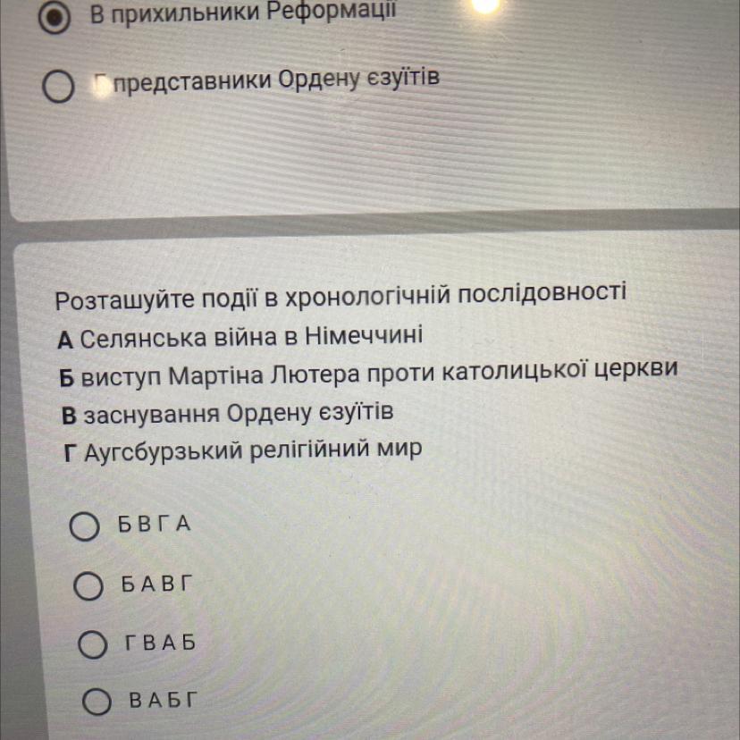 Розташуйте події в хронологічній послідовності: Б, А, В, Г.
