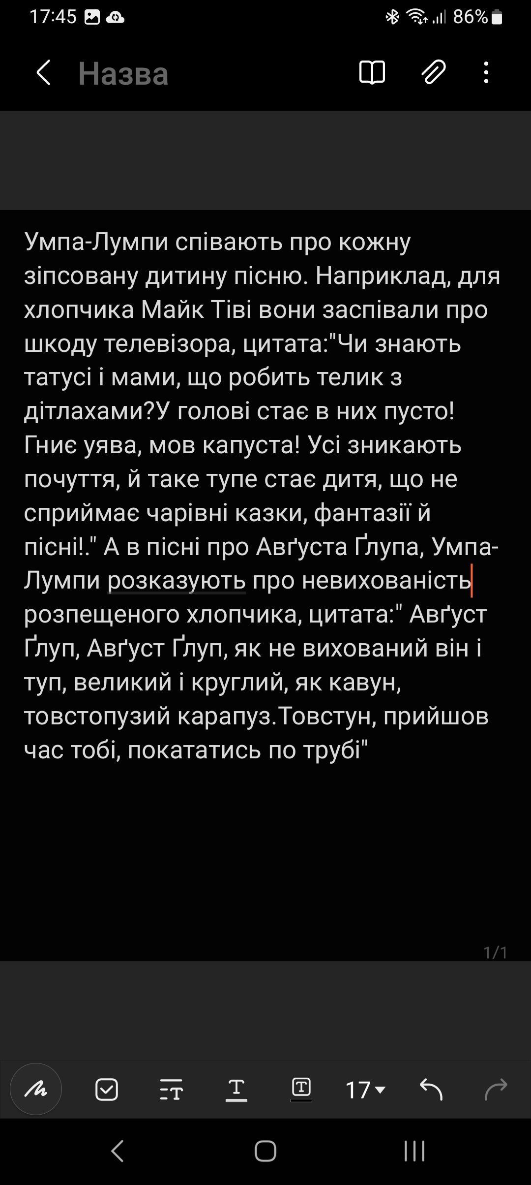 4. Дослідіть пісні умпа-лумпів. Про що вони співали? Напишіть