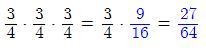 (3/4)³ = 3/4 * 3/4 * 3/4 =